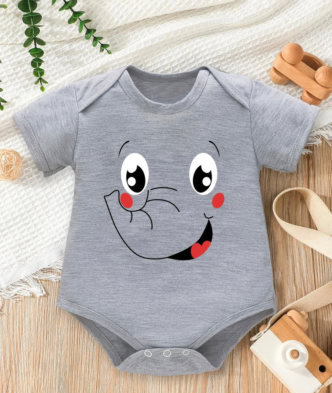 This grey elephant cartoon short sleeve bodysuit vest is perfect for baby boys. Made of soft cotton material, it's gentle on their delicate skin.